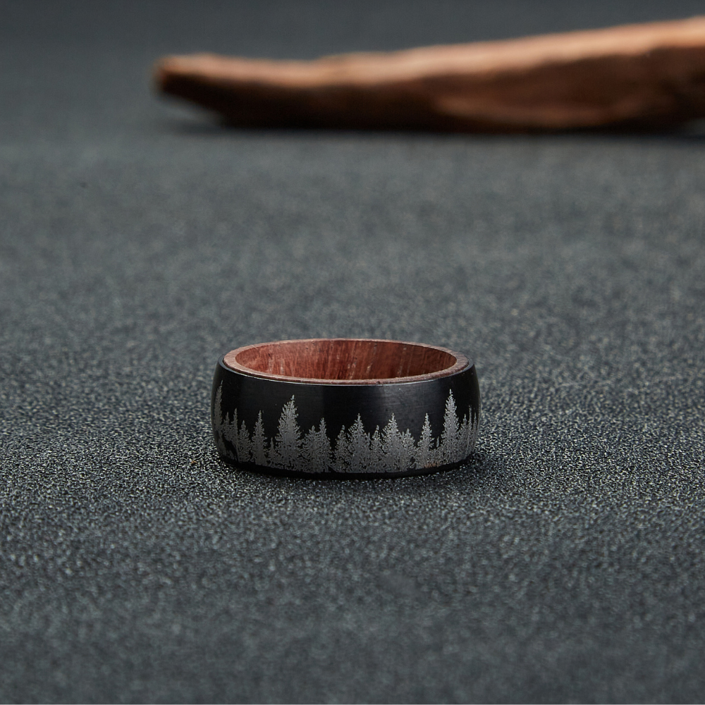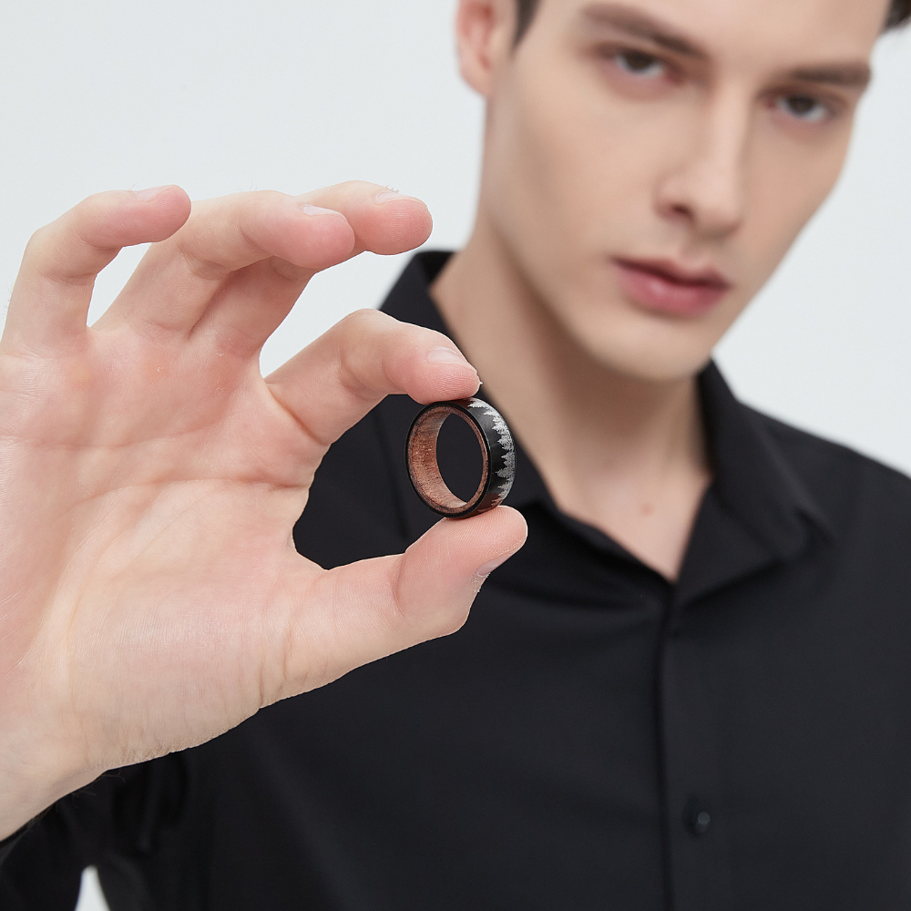 A: The Barrel Man Ring is made from high quality stainless steel and highly durable wood.
